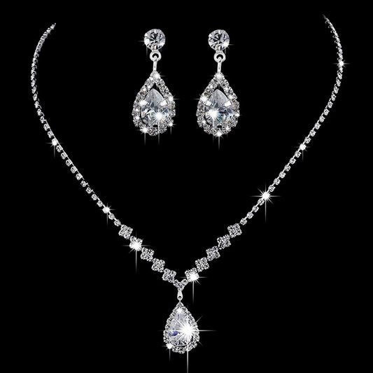 【Hot demand】3Pcs Luxury Simple Rhinestone Necklace Drop Earrings For Women Girls Fashion Exquisite Jewelry Set Wedding Bride Accessories CHAINI