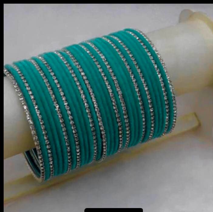 Elevate your style with this exquisite 12-piece set of velvet bangles, specially designed for ladies and girls. These trendy bangles add a touch of sophistication to any outfit, crafted with glass and velvet to exude a luxurious charm that complements any look. Whether it's a special occasion or your everyday ensemble, these bangles are a must-have accessory for women who appreciate timeless elegance, making them perfect for adding flair to your wardrobe. .